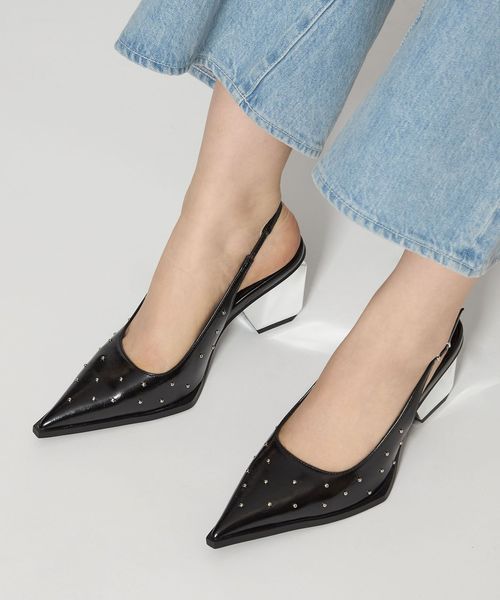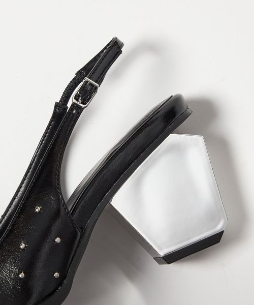 個性的なムードを漂わせるヒールが魅力的なバックベルトパンプス。