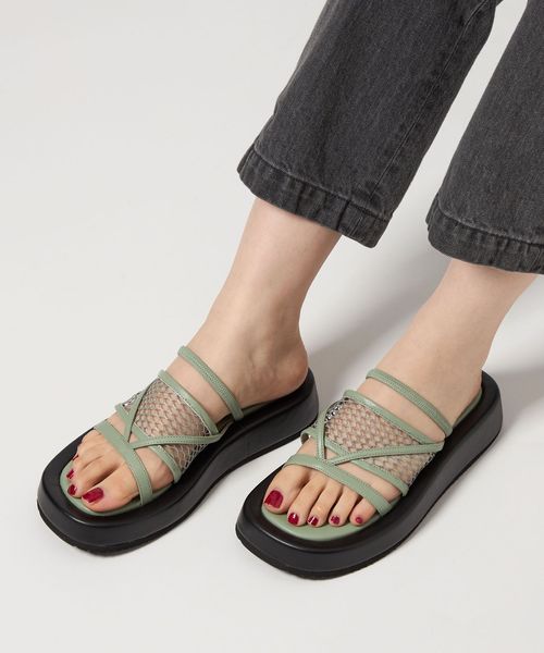 人気のフィッシュネット素材を使用したサンダル。