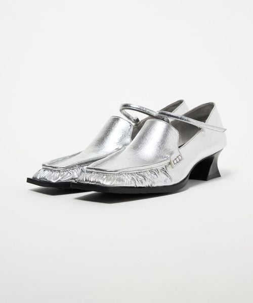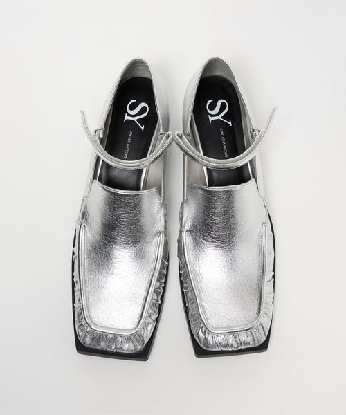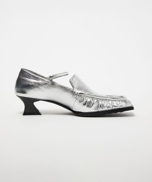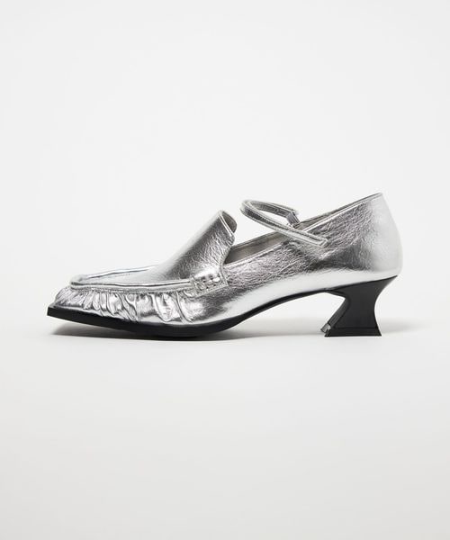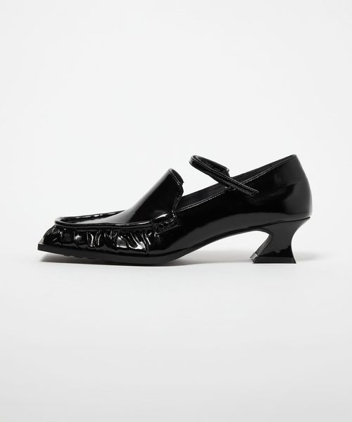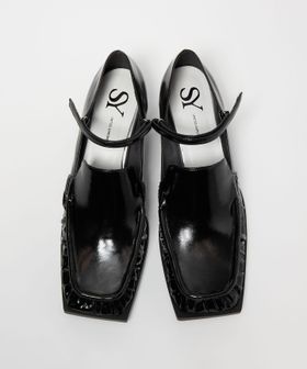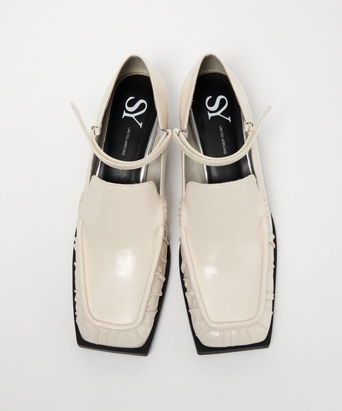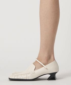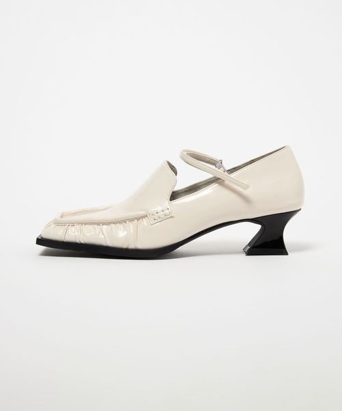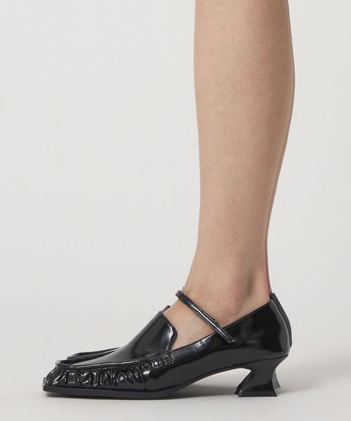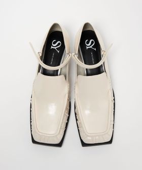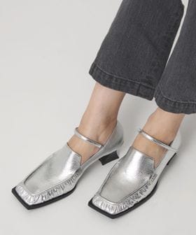甲ストラップを合わせたスクエアローファーパンプス