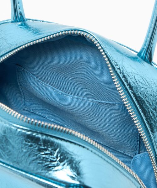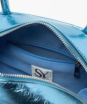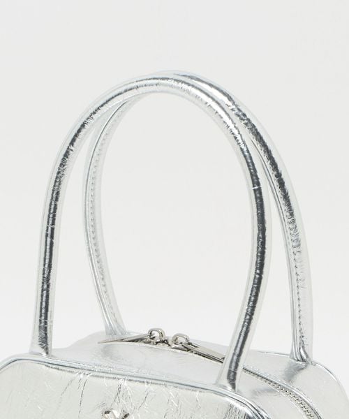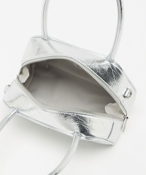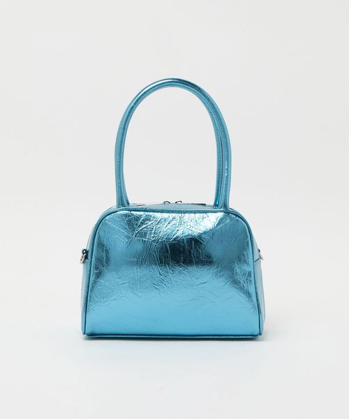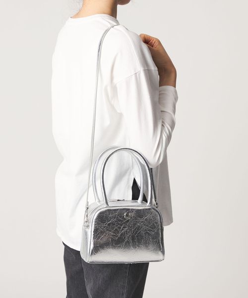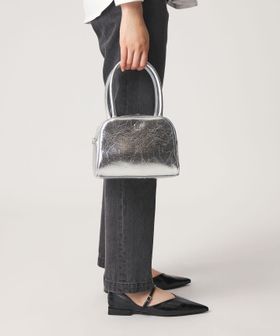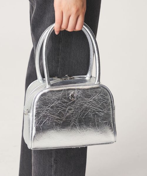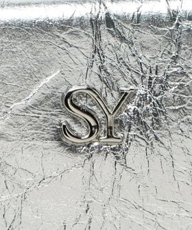 フロントにはさりげなくSYロゴのメタルパーツを施し、大きめのシワ感がはいったメタリック素材がモードさも漂わせます。
