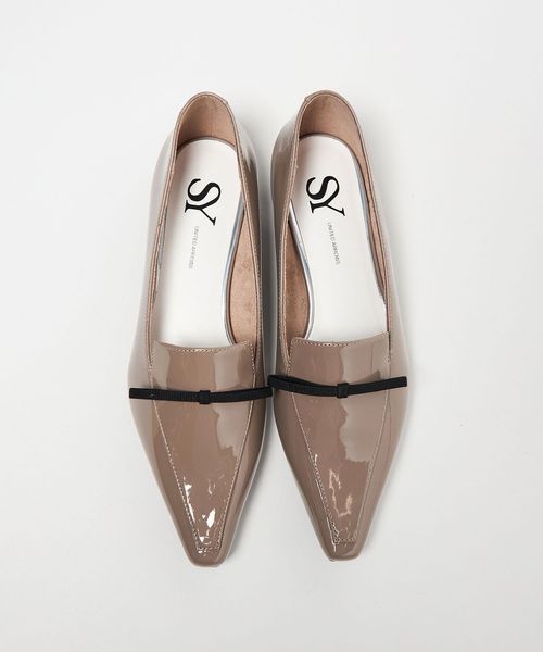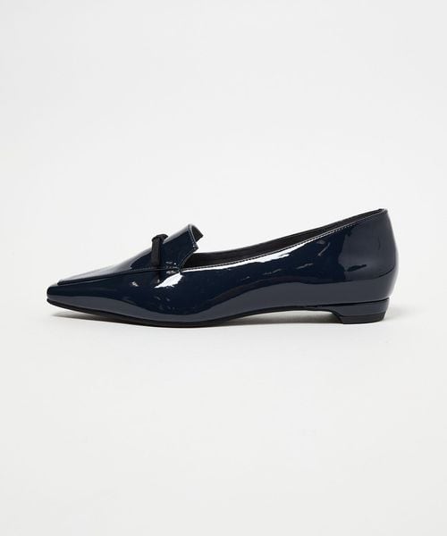 アッパーにあしらったシャープなリボンが特徴のフラットシューズ。