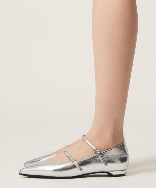 華奢なダブルストラップのフラットシューズ