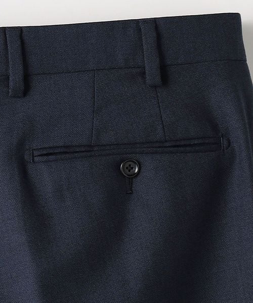 パンツはノープリーツの腰回りからテーパードをかけた、すっきりとした印象のシルエットです。