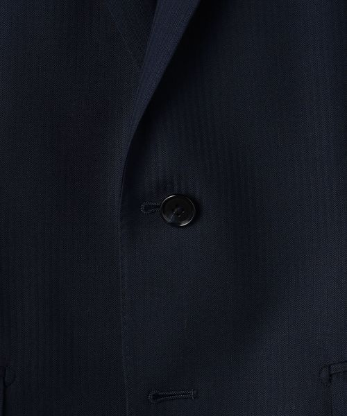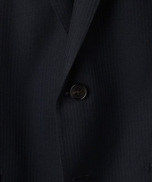 さり気ない柄の出方が上品さを感じさせるシャドーストライプのスーツ。2つボタン×ノッチドラペルのスタンダードなジャケットとノープリーツのすっきりとしたパンツを組み合わせています。年代を問わずお使いいただけるデザイン。ビジネスシーンでの活用も適しています。