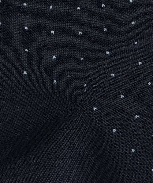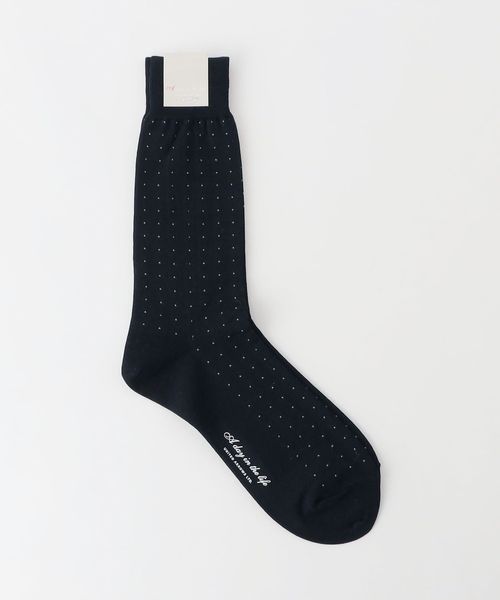 足元を上品に飾る小粒のドット柄のソックス。履きこなしやすく使い勝手が良いベーシックな配色です。ビジネススーツの足元にも適したデザイン。高さのある筒部分が脛をしっかりとカバーして、脚を組んだ際にもパンツの裾から素肌が覗きにくくスタイリッシュに決まります。