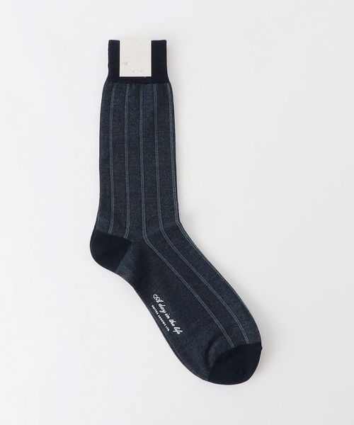 足元をシャープに飾るストライプ柄のソックス。配色には落ち着いた印象があり、履きこなしやすいデザインです。筒部分に高さがあり、ジャケパンスタイルやビジネスコーディネートなど、キレイ目に仕上げたい際にもおすすめのアイテム。滑らかな肌触りや快適なフィット感も魅力です。