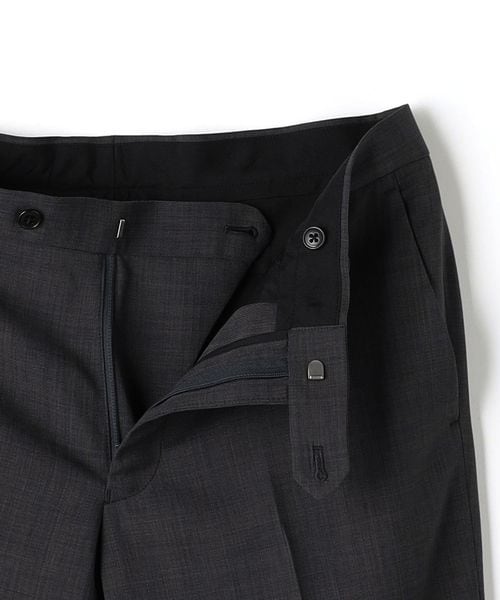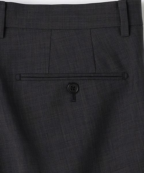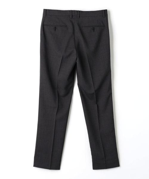 シルエットはノープリーツスリムテーパードで、センタークリース入りのすっきりとしたバランスです。