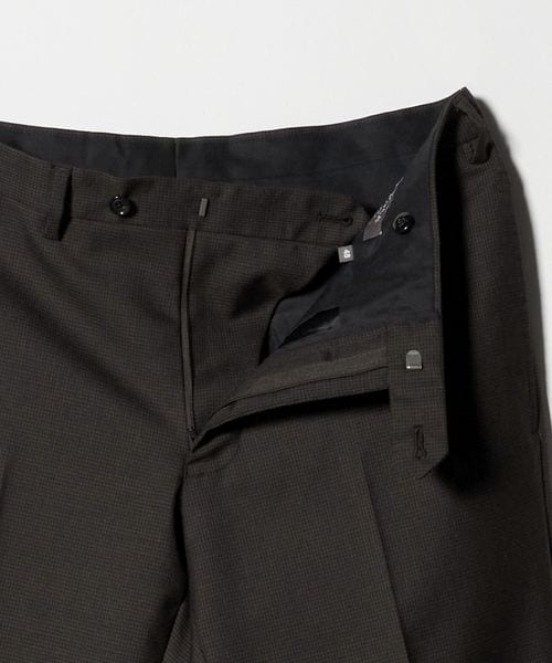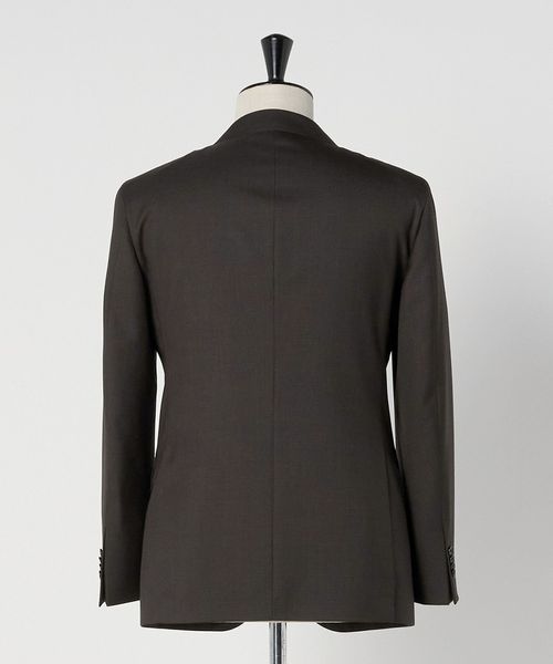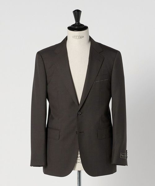 ジャケットはスタンダードな2つボタン、パンツはノータックの腰回りから強めのテーパードをかけ、すっきりとしたシルエットに仕上げています。