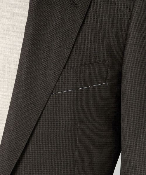 細やかなハウンドトゥース柄が上品な存在感を発揮するスーツ。