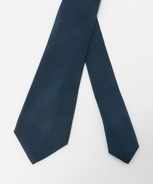 ベーシックなソリッドデザインに、ヘリンボーンの織りで表情をさりげなくプラスしたネクタイ。