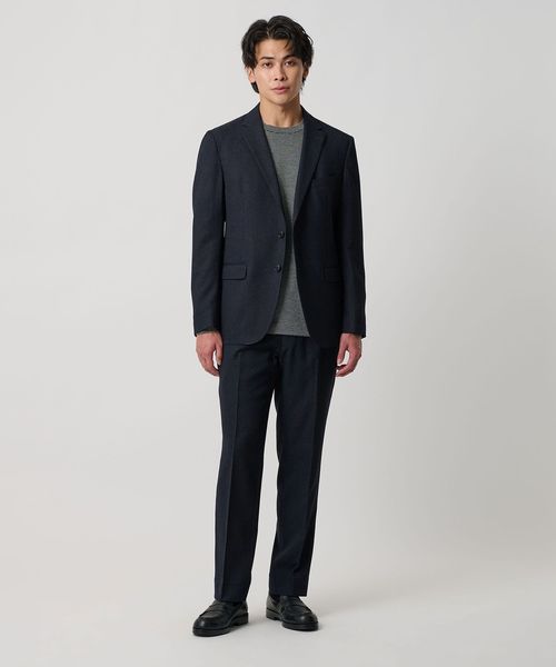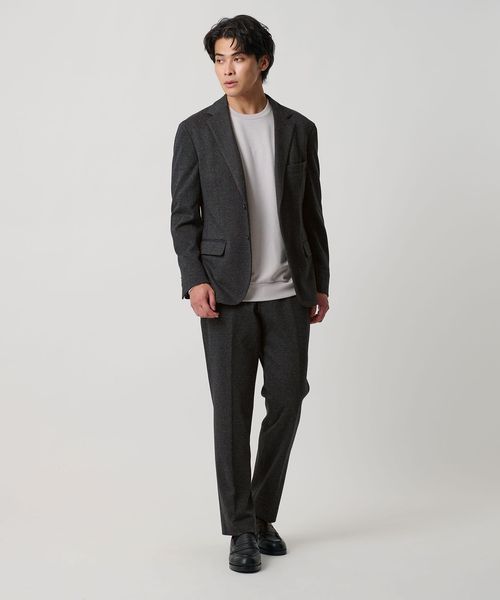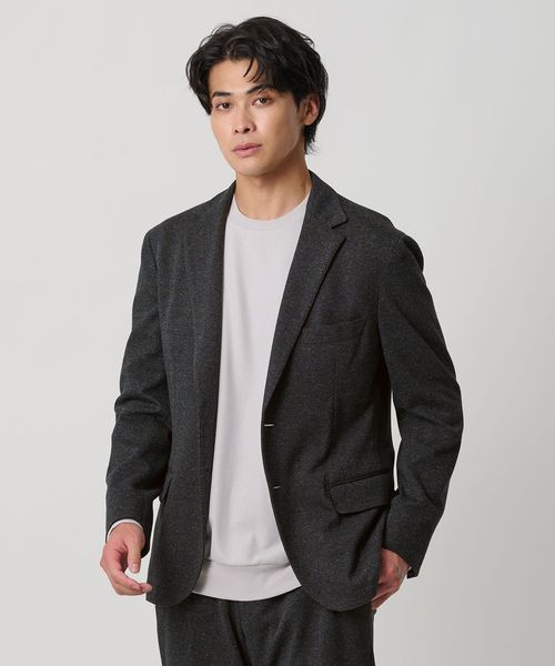 他の単品パンツ、ニットとのコーディネートも可能なオンオフ兼用ジャケット。