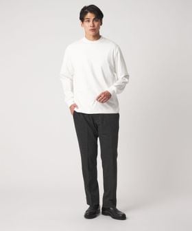 着心地よく、上品見えする杢調のツイルジャージ素材を採用したスラックス。