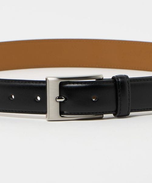 滑らかな表面感にきれいな光沢が映える、シンプルなデザインのベルト。