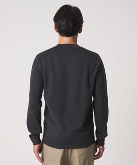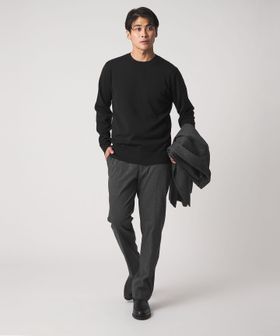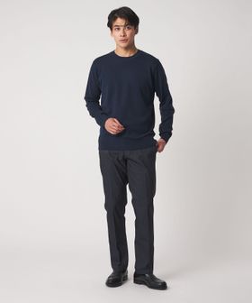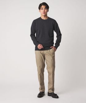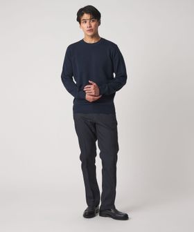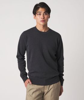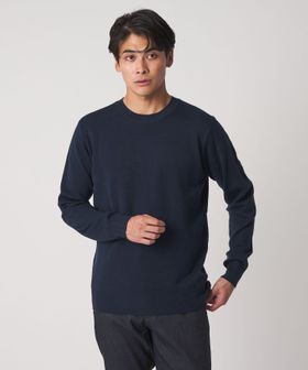 スタンダードなクルーネックにベーシックカラーの着こなしやすさもポイント。