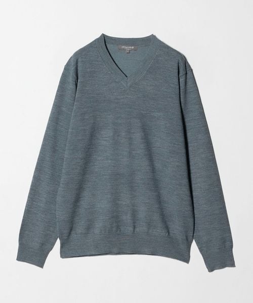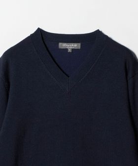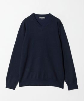 一枚着としてもレイヤードアレンジにも活躍する、程よい開き具合のVネックニット。