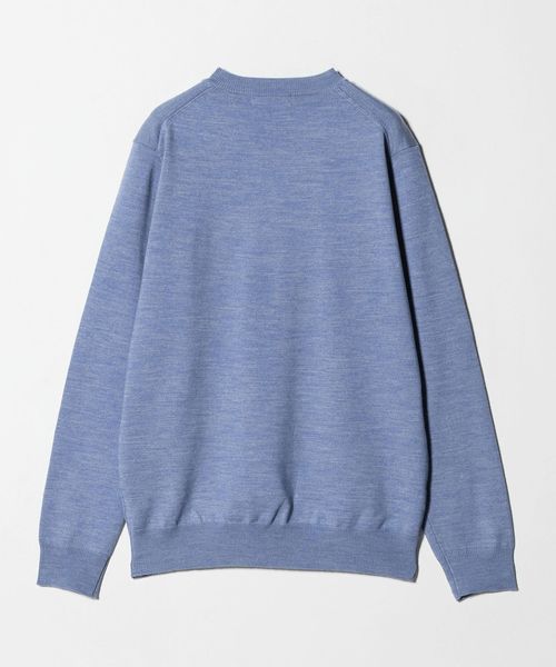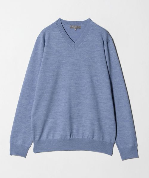 一枚着としてもレイヤードアレンジにも活躍する、程よい開き具合のVネックニット。