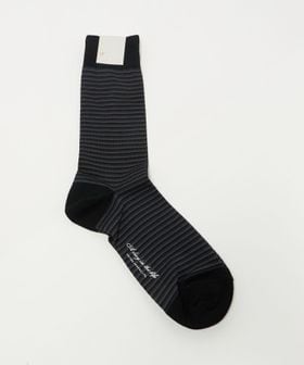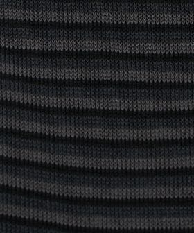 同系色に細ピッチと、上品な印象にまとまったボーダー柄のソックス。