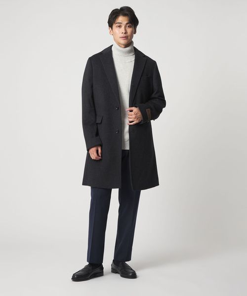 カシミヤブレンドのウール素材を採用したクラシカルで上品な印象のチェスターコート。
