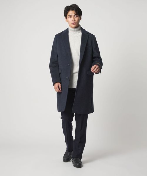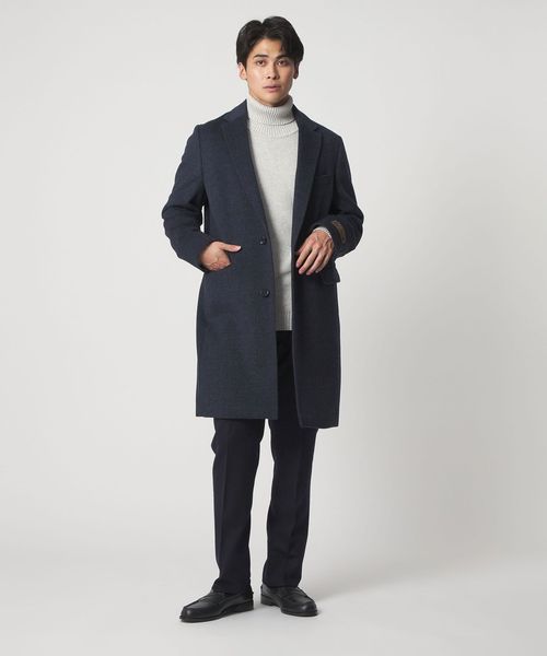 カシミヤブレンドのウール素材を採用したクラシカルで上品な印象のチェスターコート。