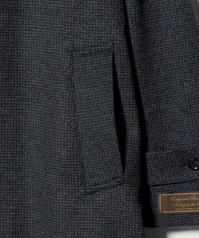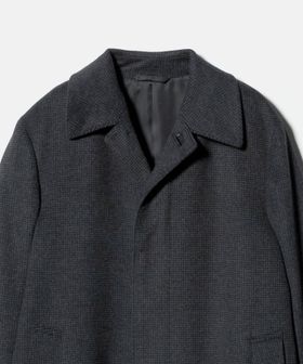 クラシカルな雰囲気溢れるハウンドトゥース柄のバルカラーコート。