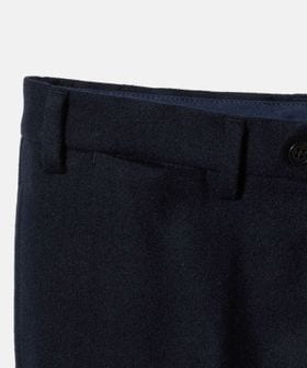 ふんわりとして温かみのある表情の生地で仕立てたパンツ。