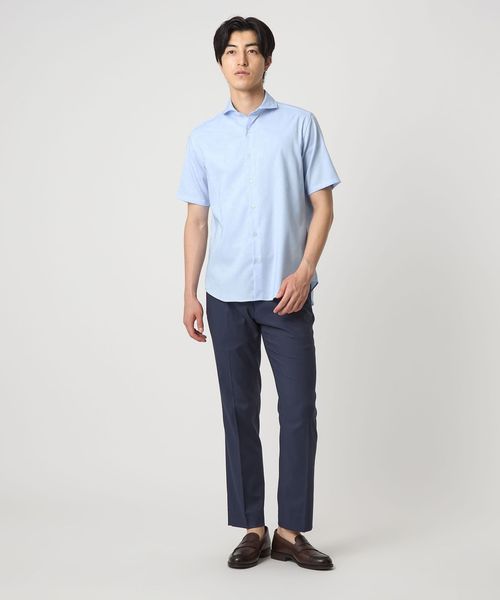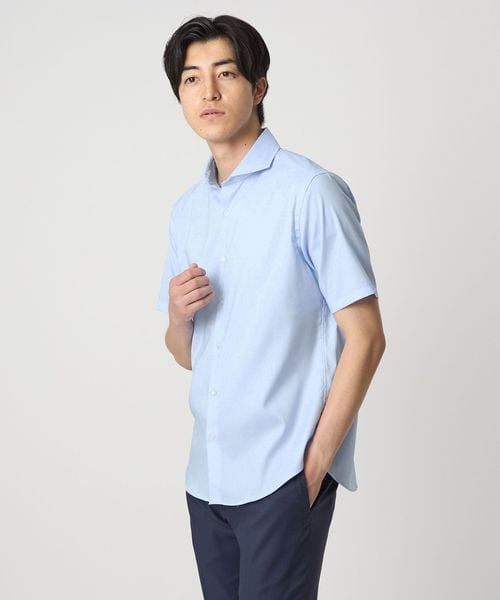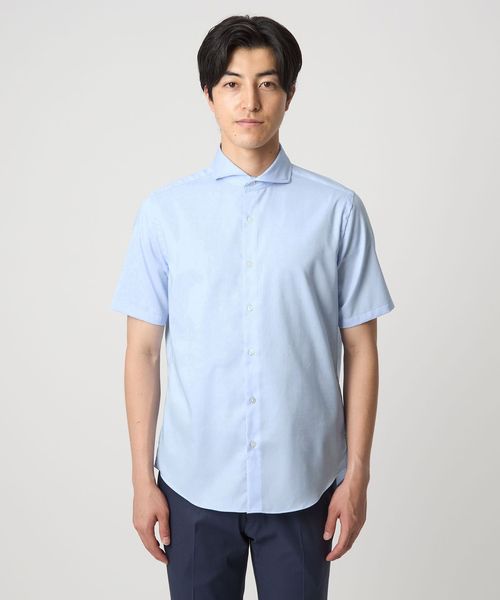 スタイリッシュに着こなせるカッタウェイカラーの半袖シャツ。