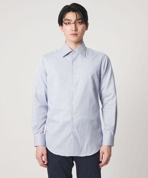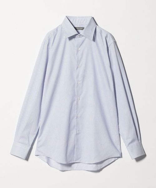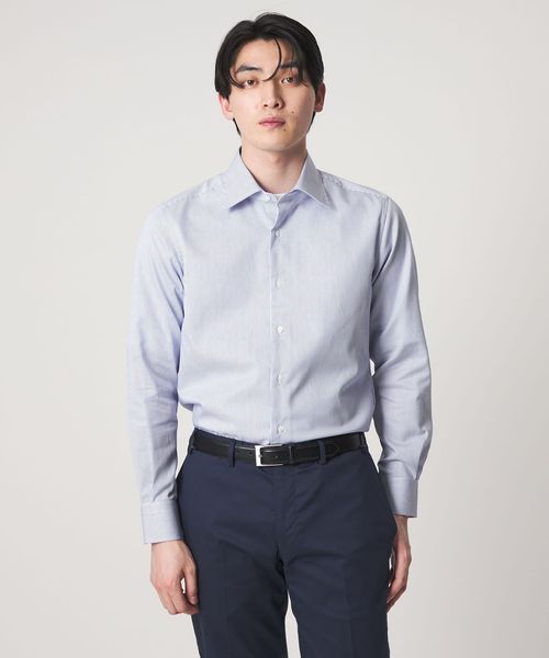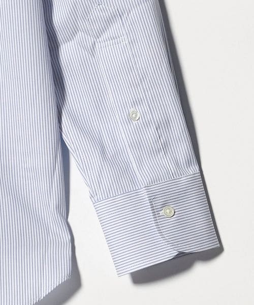 細ピッチのストライプ柄がすっきりとした印象を与える長袖シャツ。