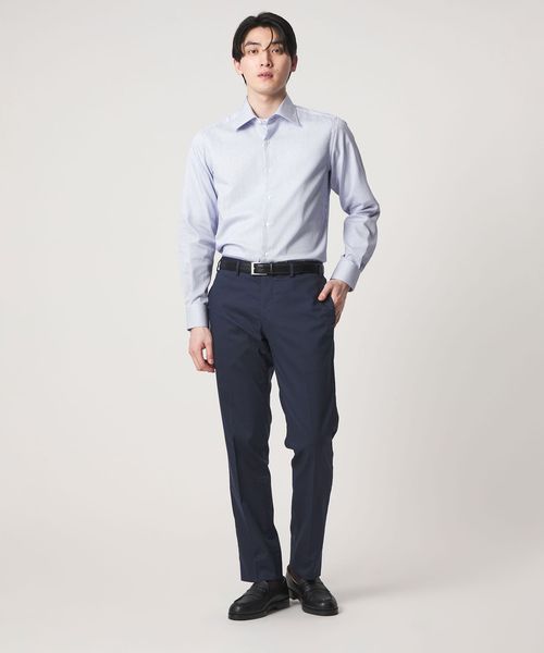 衿羽根が程よく開いたセミワイドカラーを採用し、顔まわりをシャープに見せます。