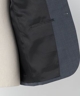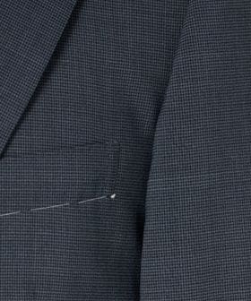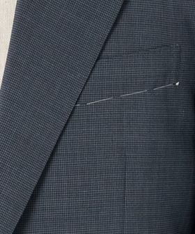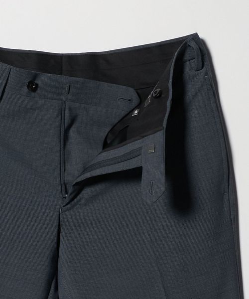 トラウザーズはノープリーツのスリムテーパード。ミニ千鳥柄がさりげない洒落感を演出し、ビジネスシーンにスタイリッシュな印象を添えます。