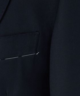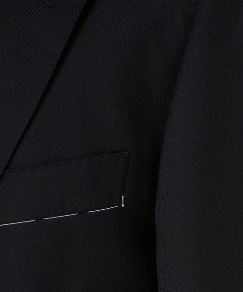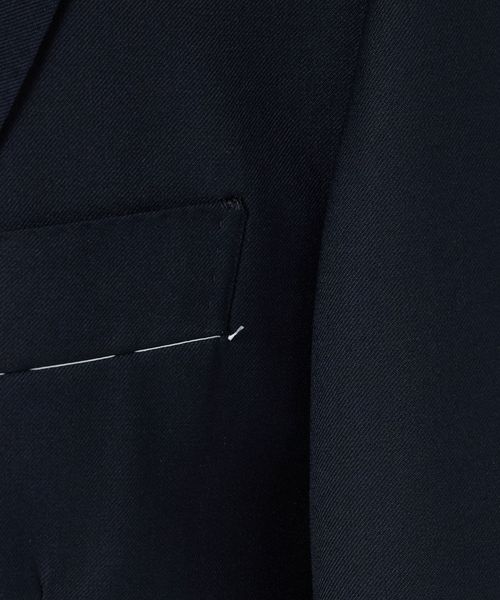 上品なサージ素材がスマートな印象を与え、2ピースでも3ピースでもバランスよく着こなせます。