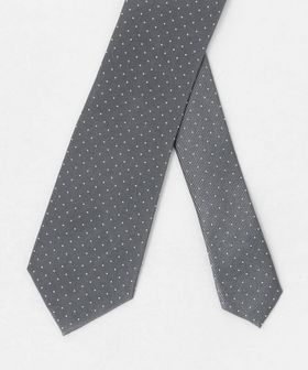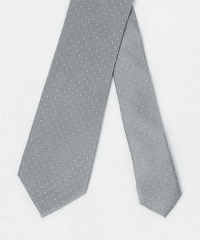 ツイルのような畝を持つ素材にピンドットを散りばめたネクタイ。