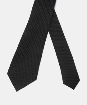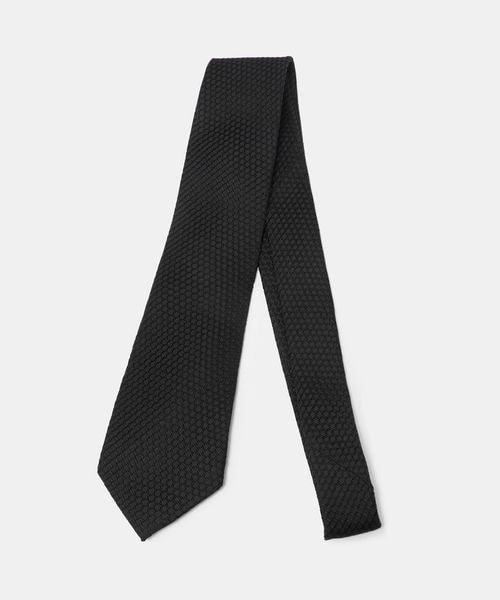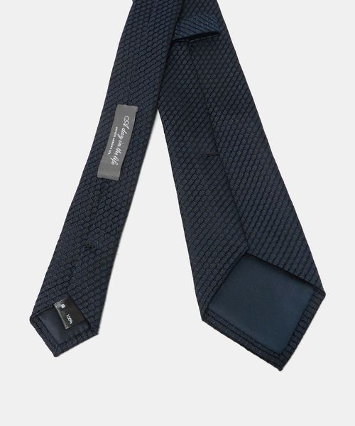シルクを用いたソリッドタイ。ニットのような質感の、凹凸のある素材で、親しみやすさを感じさせる表情に仕上げています。