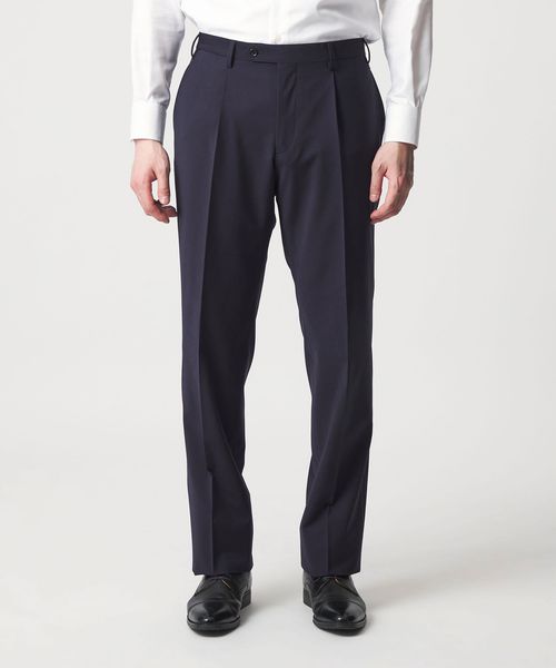 パンツにはトロピカル素材を使用し、軽さと通気性の良さを備えています。