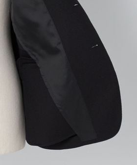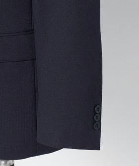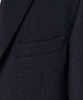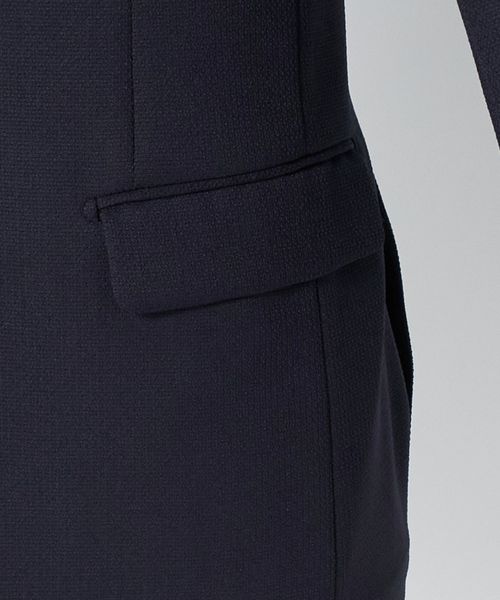 腰フラップやサイドベンツなどのディテールを備えた王道のデザインで、織り柄によるさりげない表情が上品さを引き立てます。