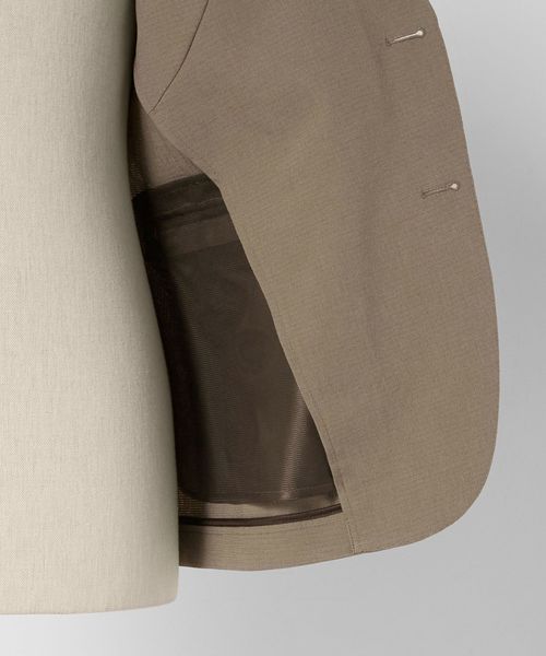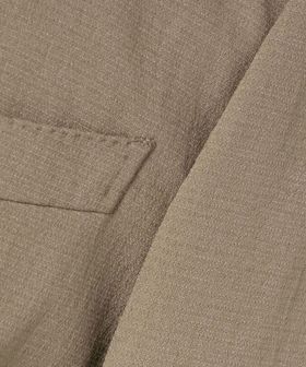 シングル2ボタン仕様に腰フラップポケット、センターベントを備え、カジュアルな着心地ながらもきちんと感を演出します。
