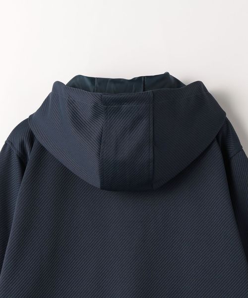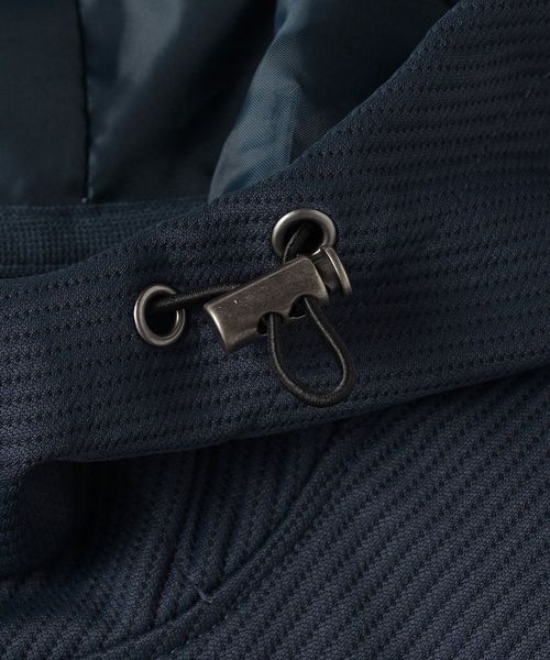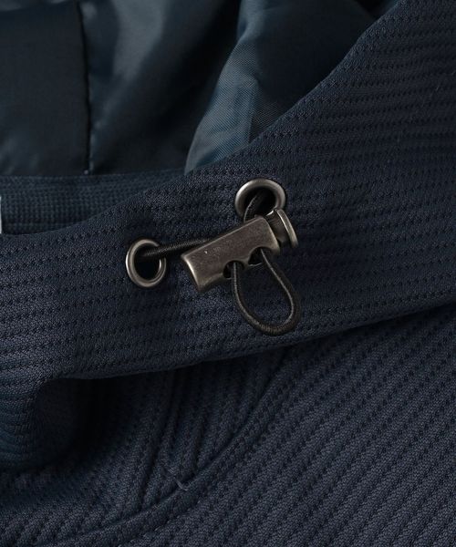 ボリュームを持たせたドローコード付きのフードがポイントです。