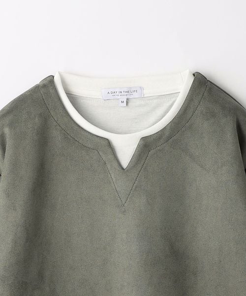 スエードライク フェイクレイヤード キーネックTシャツ <A DAY IN THE LIFE>