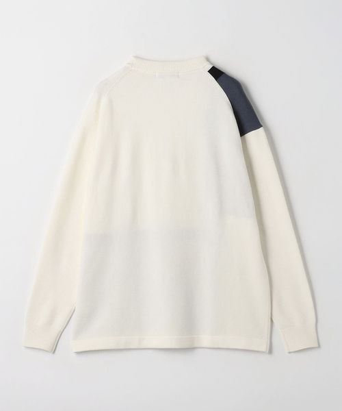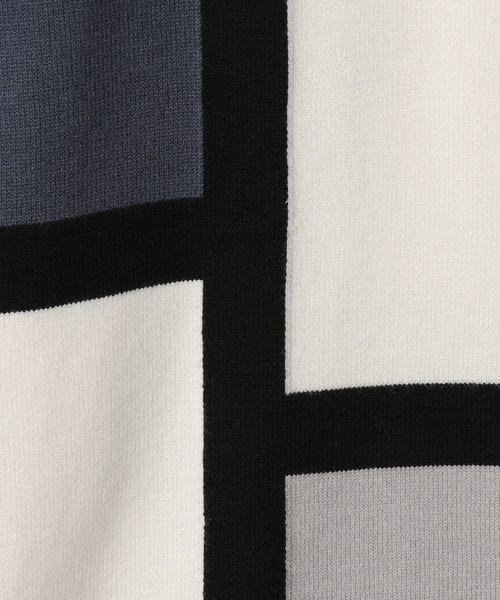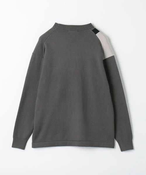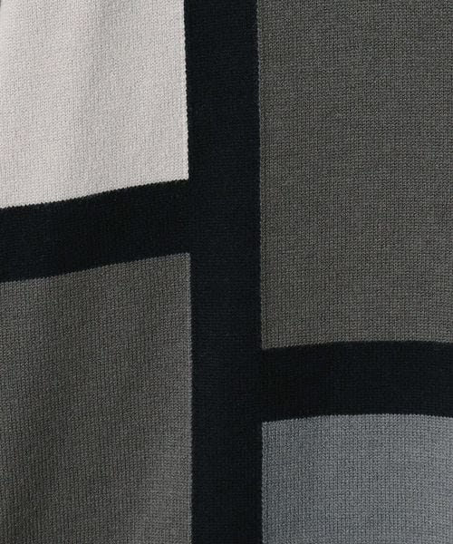 アシンメトリーなカラーブロックデザインがモードな雰囲気のニットプルオーバー。