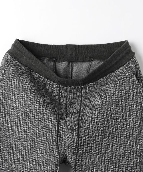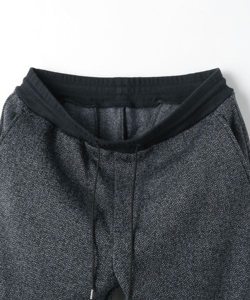 ヘリンボーン柄によってクラシカルな雰囲気を出したジョガーパンツ。