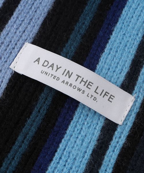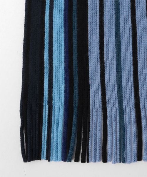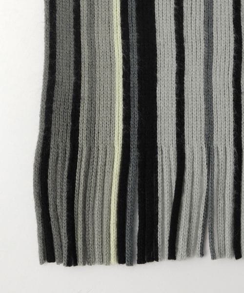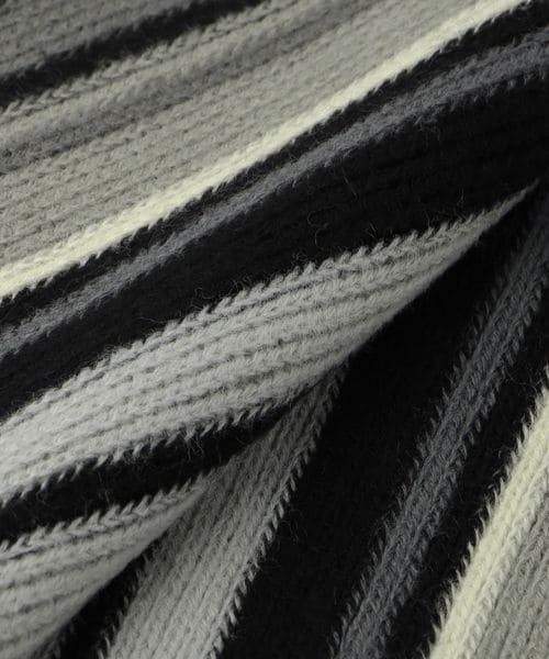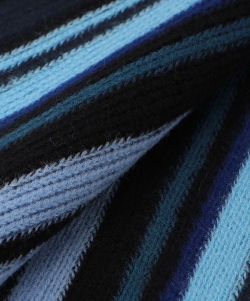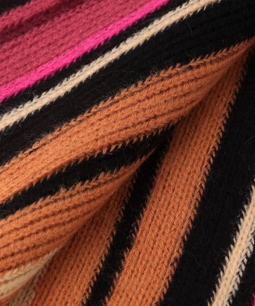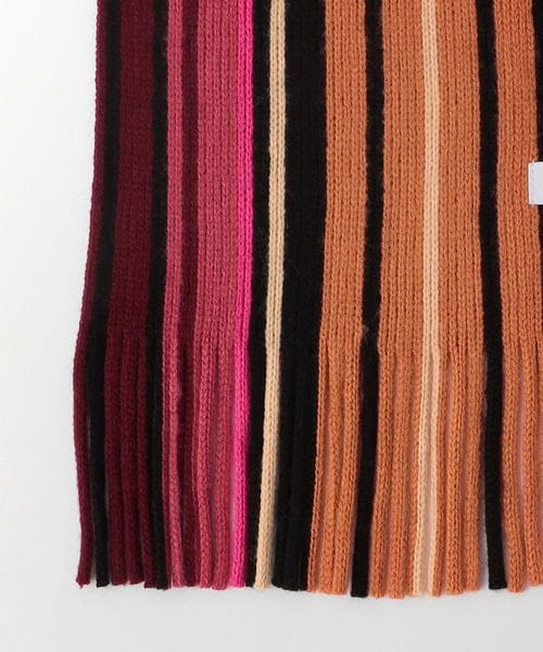 シンプルに巻くだけでも印象的なマルチストライプのマフラー。