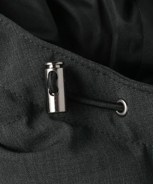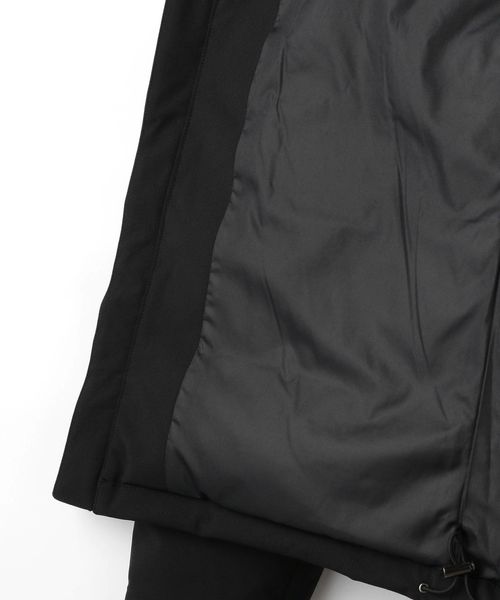ドローコードがフード周りと裾に施され、外気が入りにくいよう調整可能。
