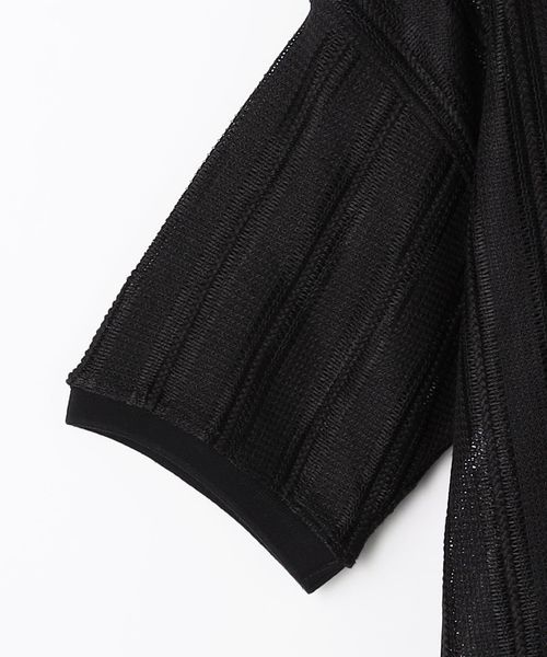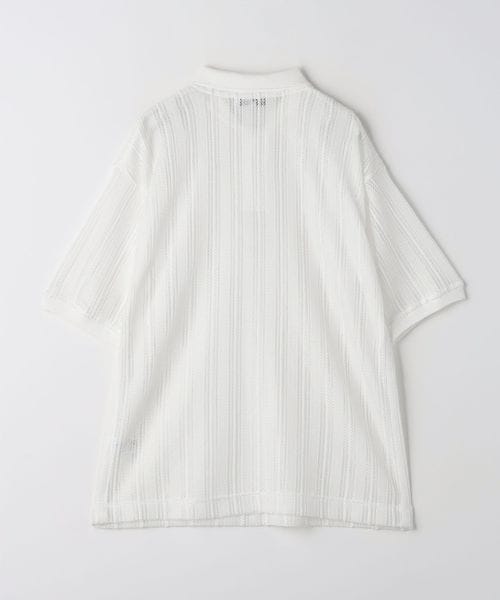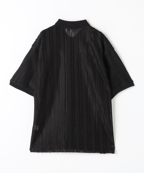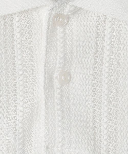 ストライプ調のレースを使用した、シアー感あるポロシャツ。
