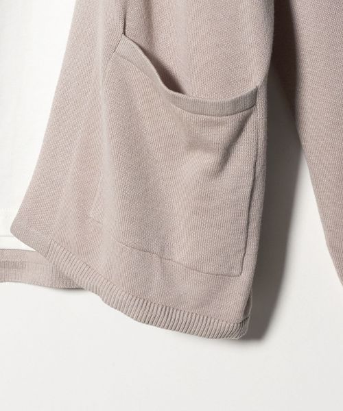 カーディガンはノーカラーで、程よいリラックス感があります。
