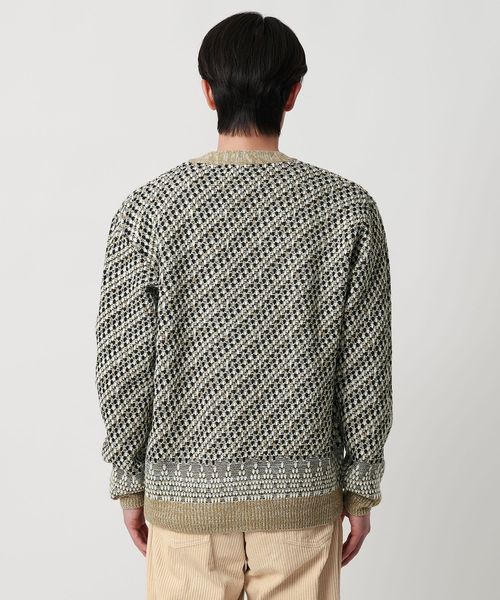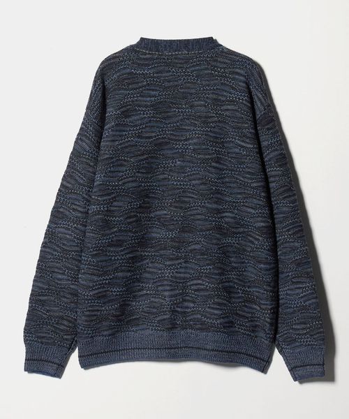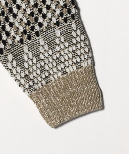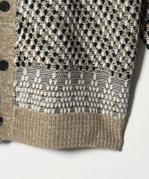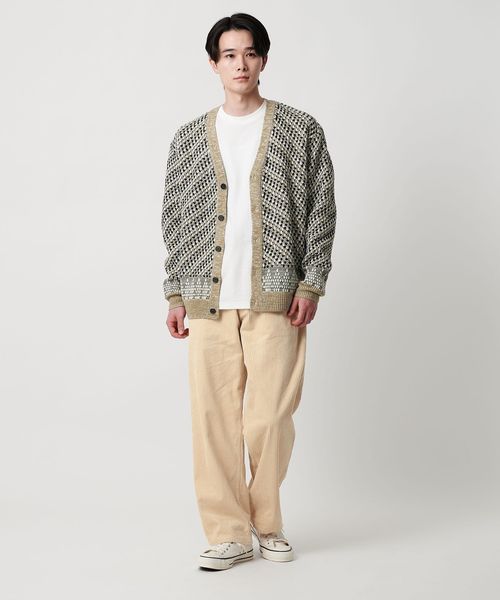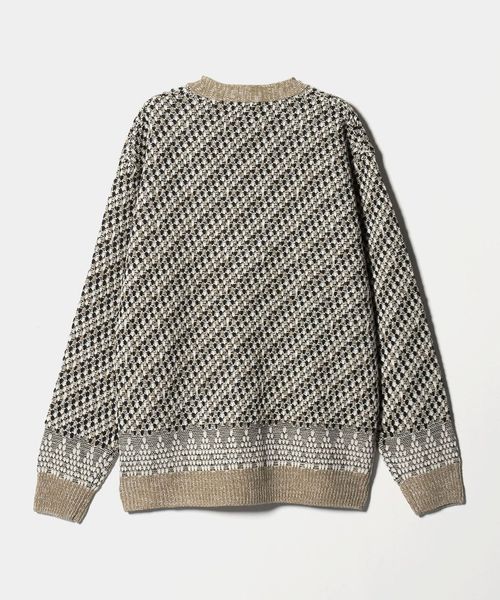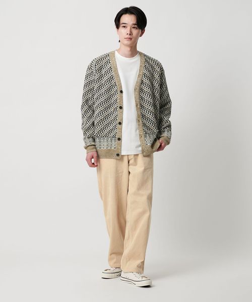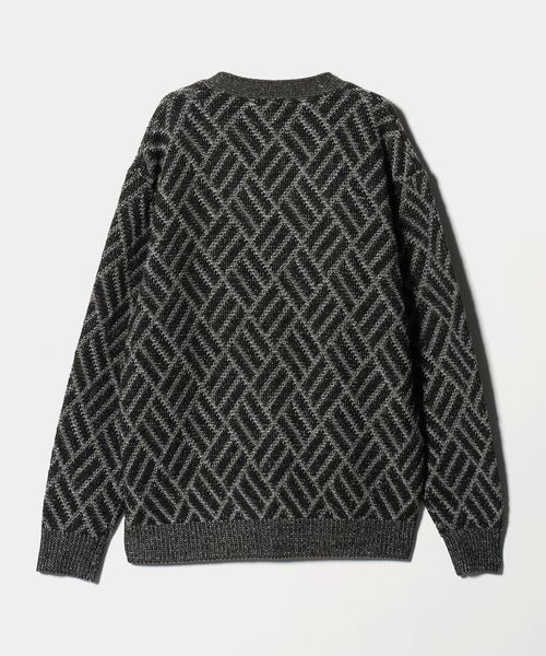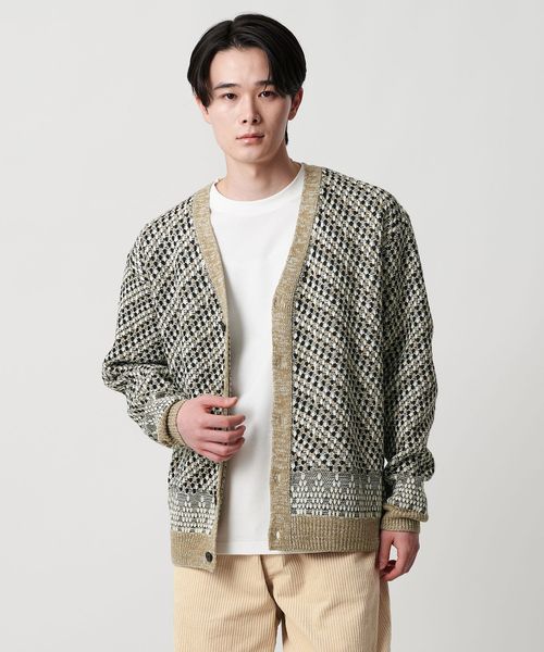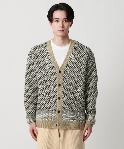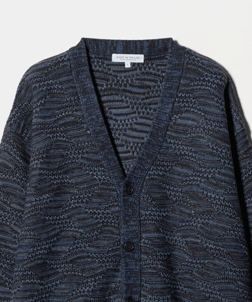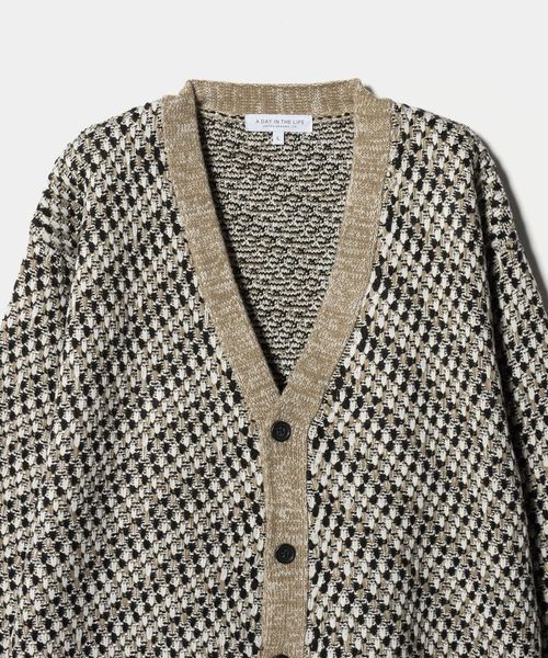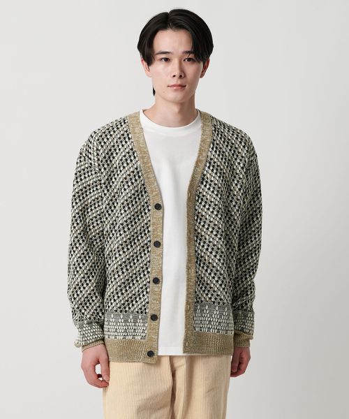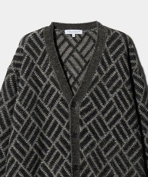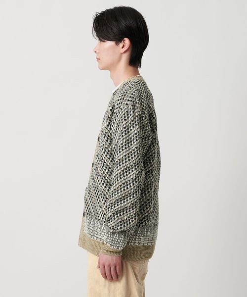 特徴的な柄感のややゆとりのあるシルエットのカーディガン。