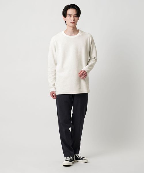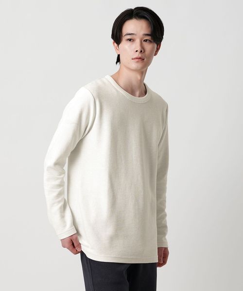 シンプルな無地のデザインに、凹凸感によって表情が加わったカットソー。