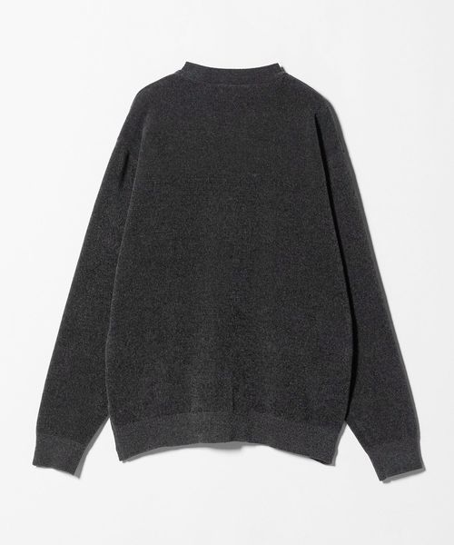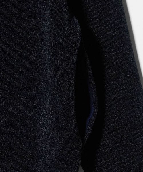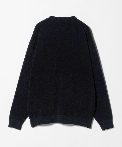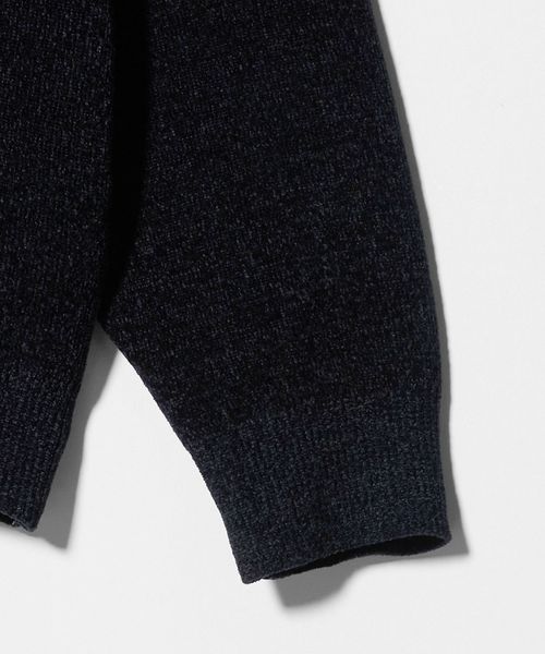 適度な光沢とウォーム感のあるモール糸を使用したややゆるめのシルエットのカーディガン。