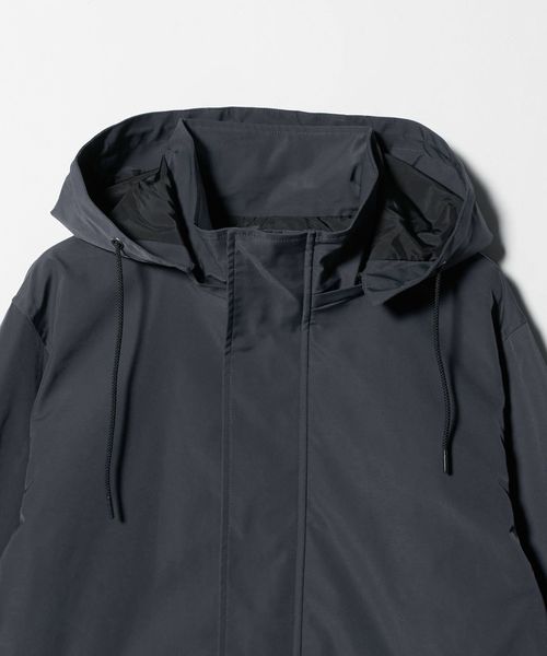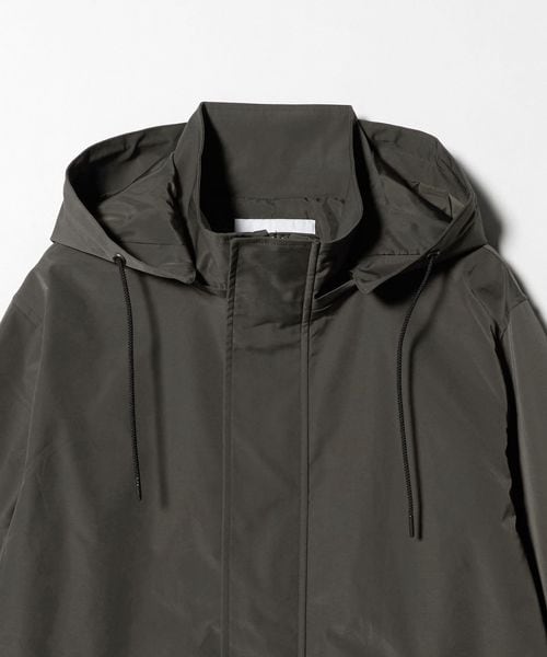 キレイめな合繊素材を使用したショート丈のモッズコート。