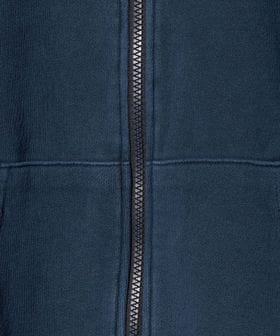 カジュアルな羽織アイテムとしても重宝するジップフーディ。