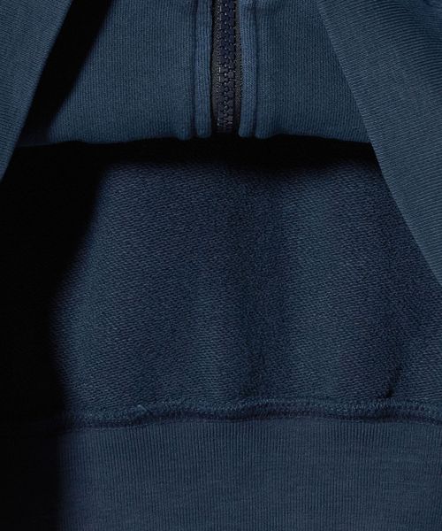カジュアルな羽織アイテムとしても重宝するジップフーディ。