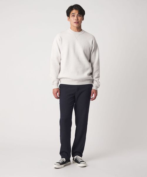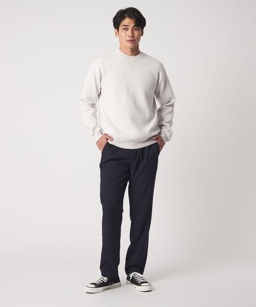 ウール調ポリエステル素材を使用したキレイめイージーパンツ。
